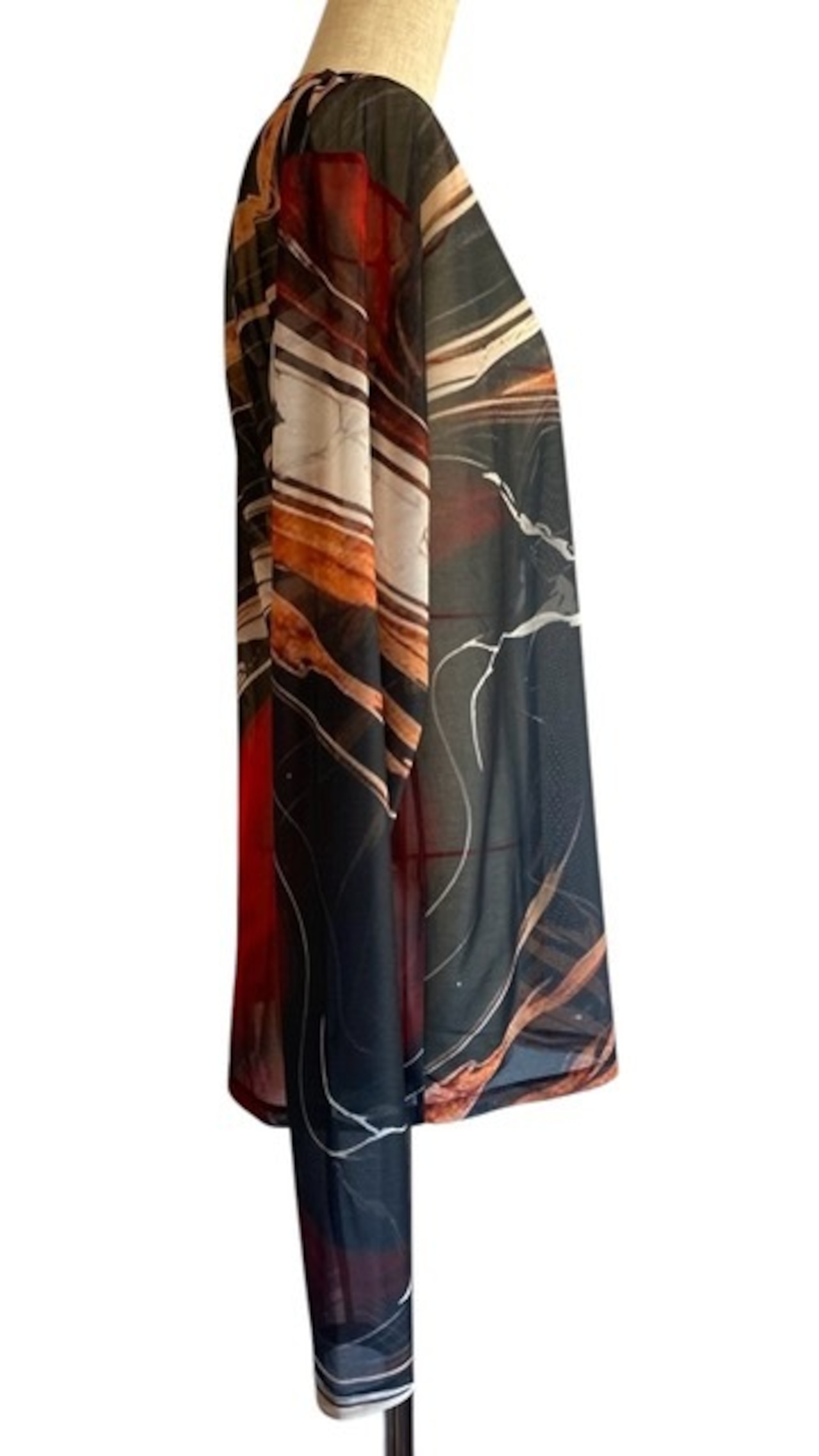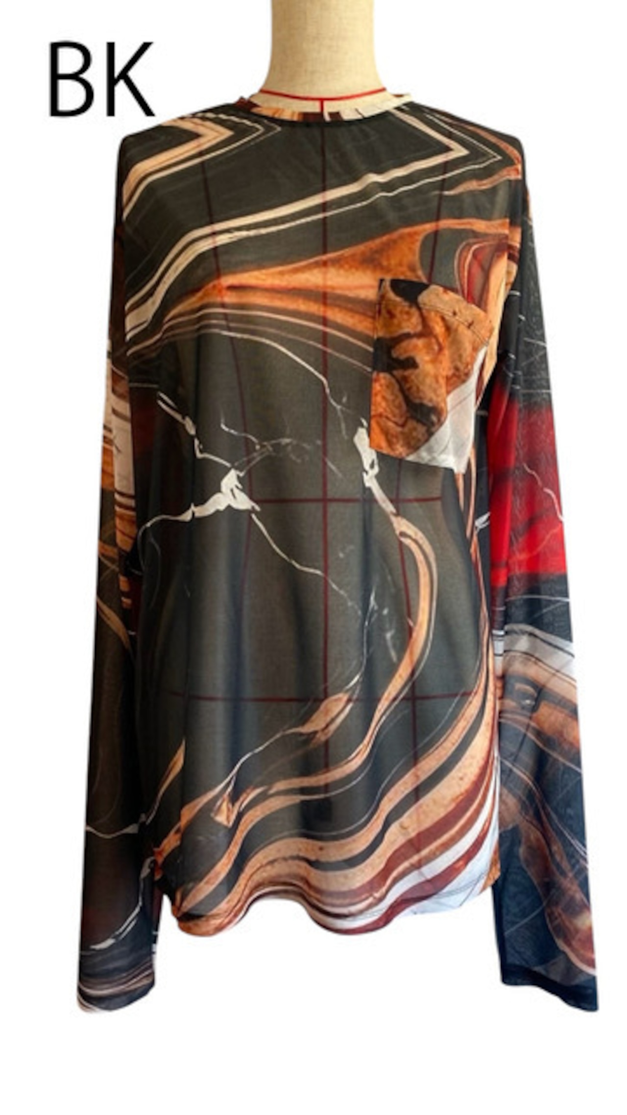 ゆるりとしたシルエットと柄で透け感がありながらも身体のラインが出ないのも定評があり