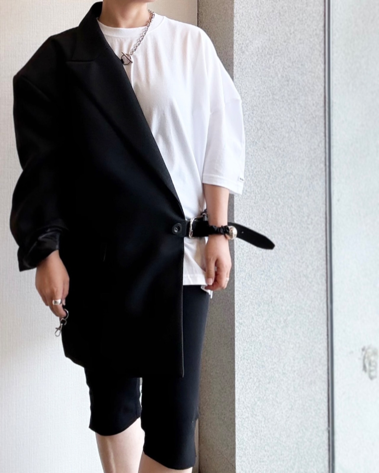 袖なしのアイテムとレイヤードでも