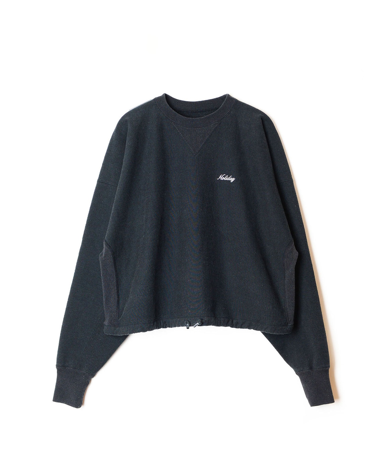HOLDAYの定番シリーズ【ULTRA HEAVY SWEAT】のクルーネックトップス。ドライコットンを使用したHOLIDAYオリジナルスウェット素材は一般的な裏毛の倍もの重量。さらにウォッシュ&高温乾燥の加工を施し肉厚でドライに仕上がっています。大きなアームホールが特徴的で、裾はドローコードでシルエットの調整が可能な仕様。経年変化を楽しみながら長く着ていただきたいシリーズです。