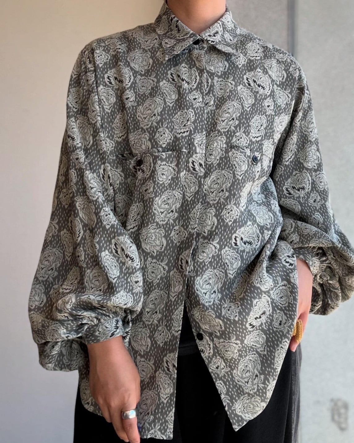 奥行き感ジャカード織で浮きたつようなお花柄が特徴的なシャツ