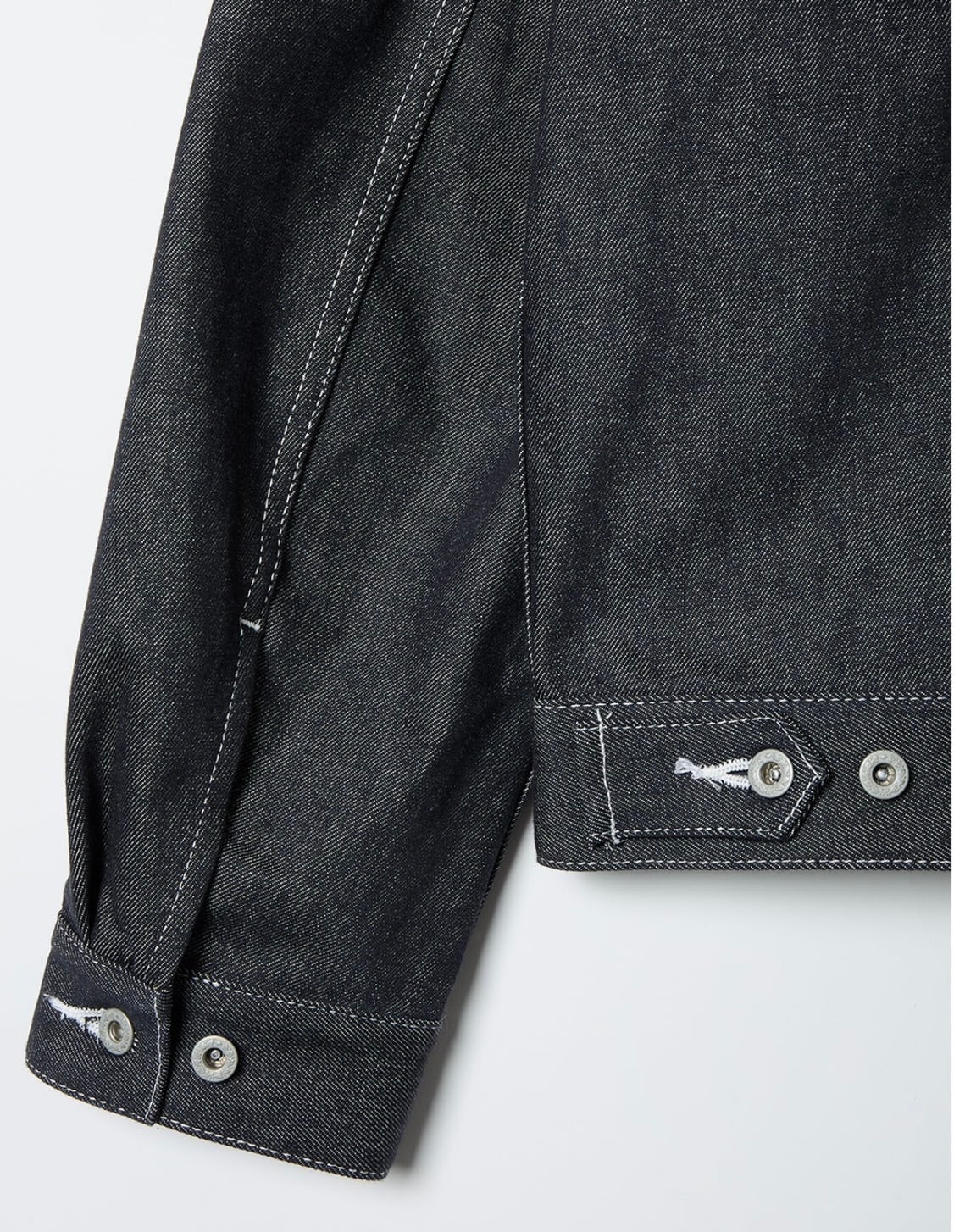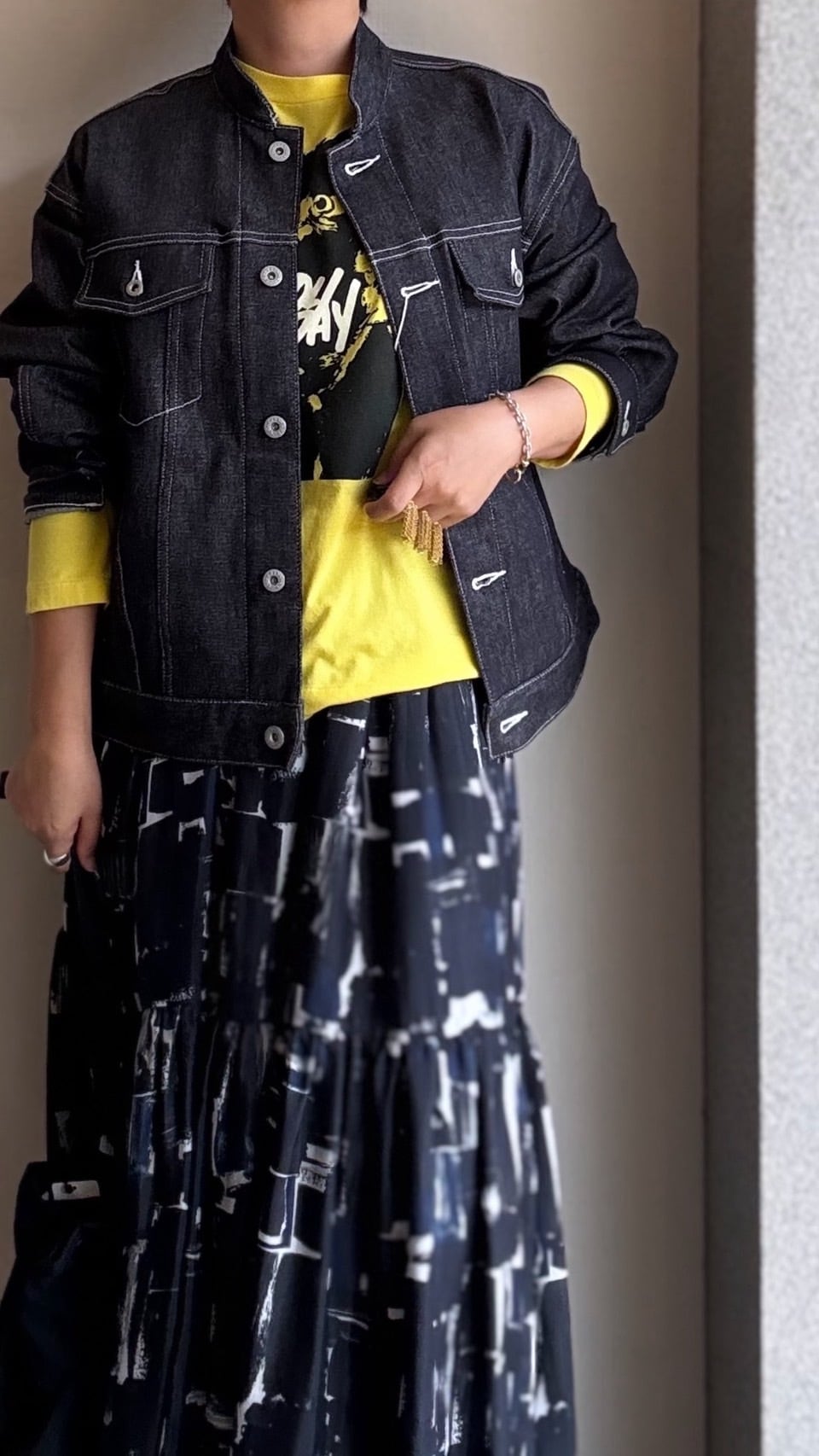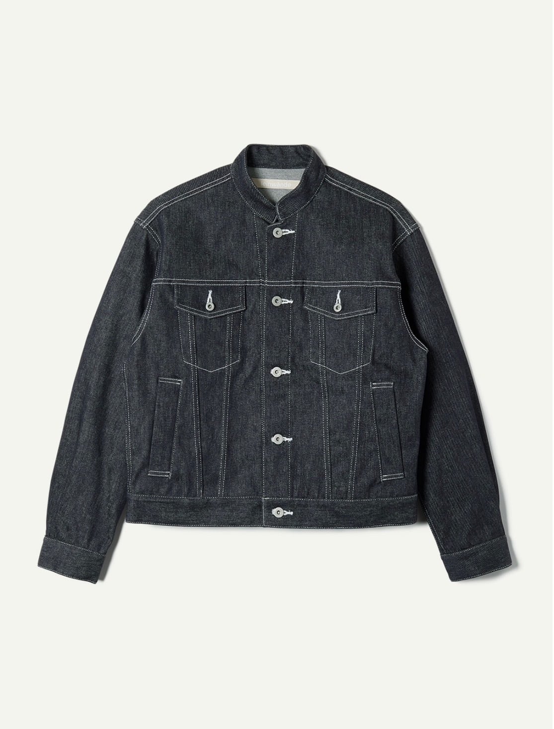 ボリューム感のあるシルエットとコンパクトなスタンドカラーが特徴的なデニムジャケット