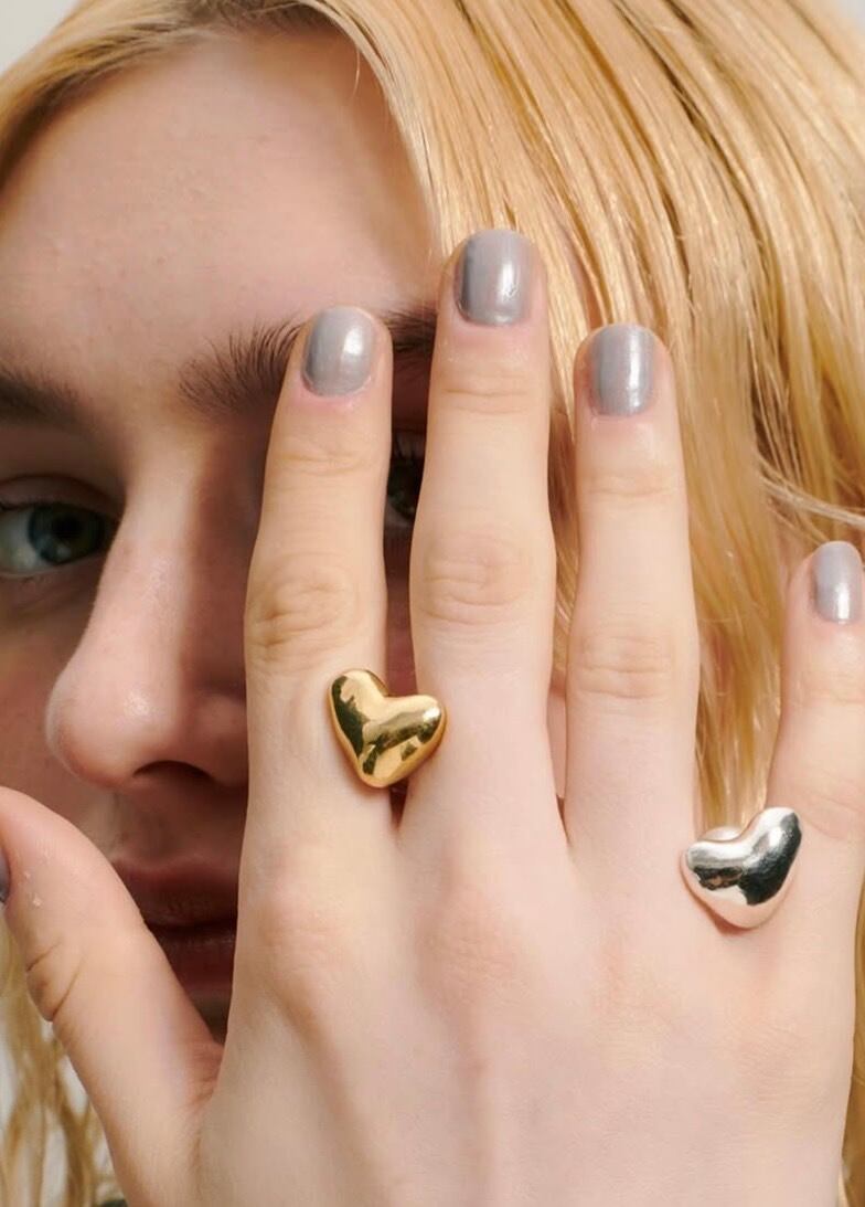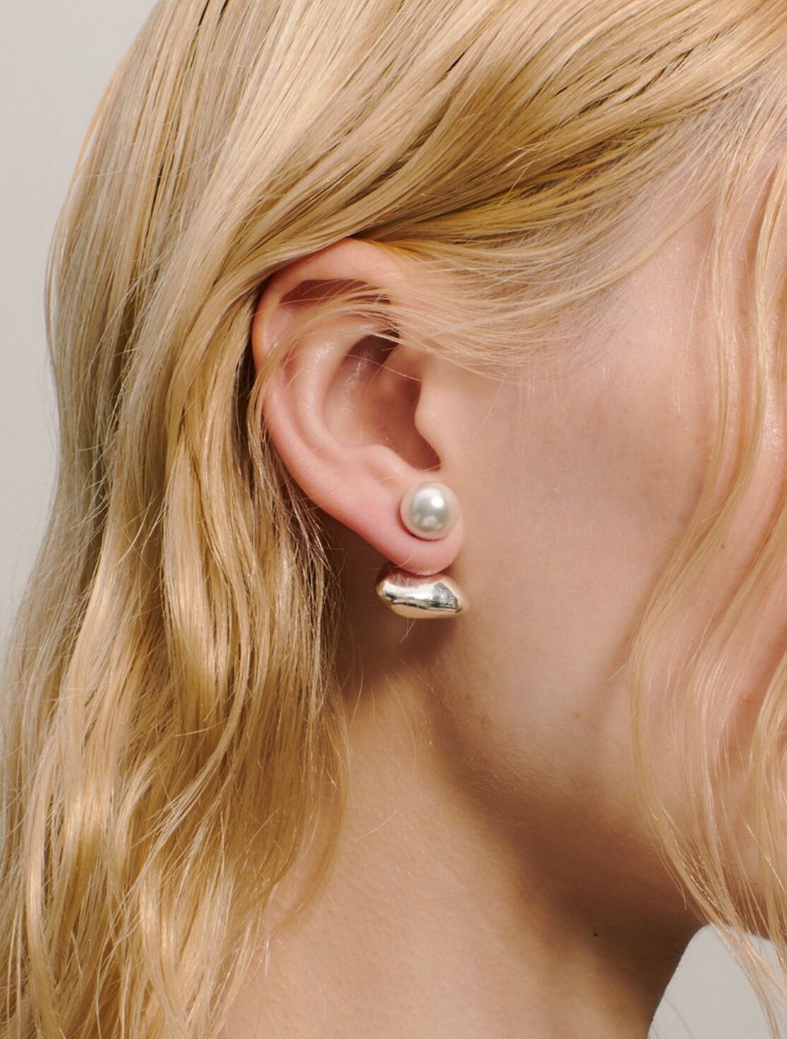 ぷっくりとしたハートモチーフとパールがコンビのピアス