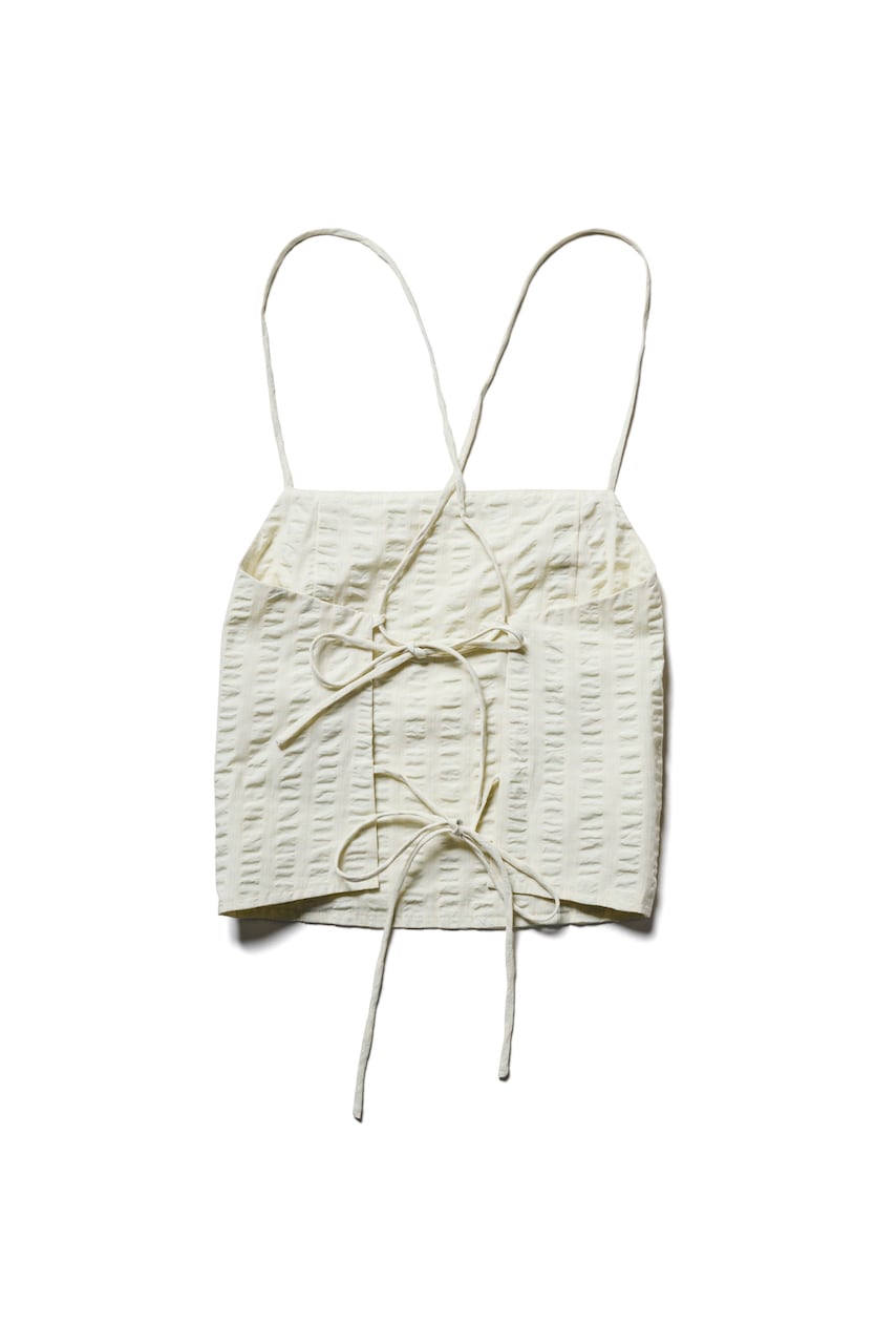 リボンストラップのスリーブレストップ