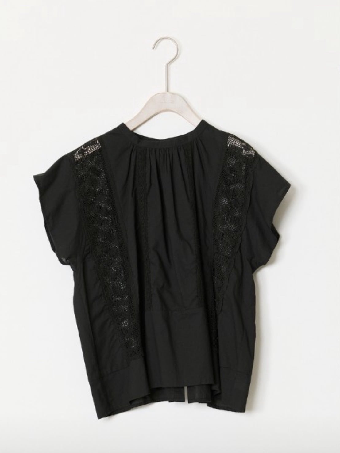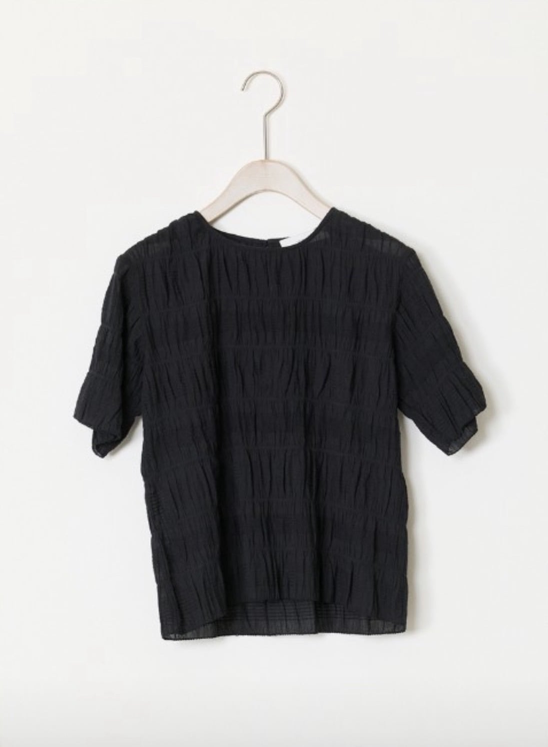 COTTON SHIRRING SHORT SLEEVE TOPS BLACK