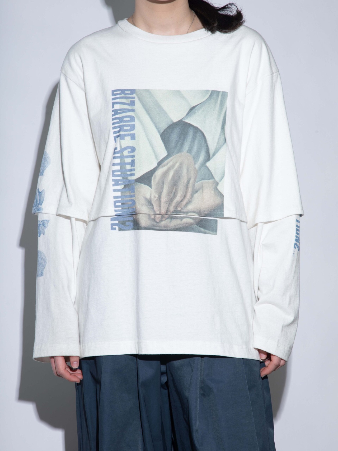 今季の世界観を象徴するレイヤードデザインプリントTシャツ