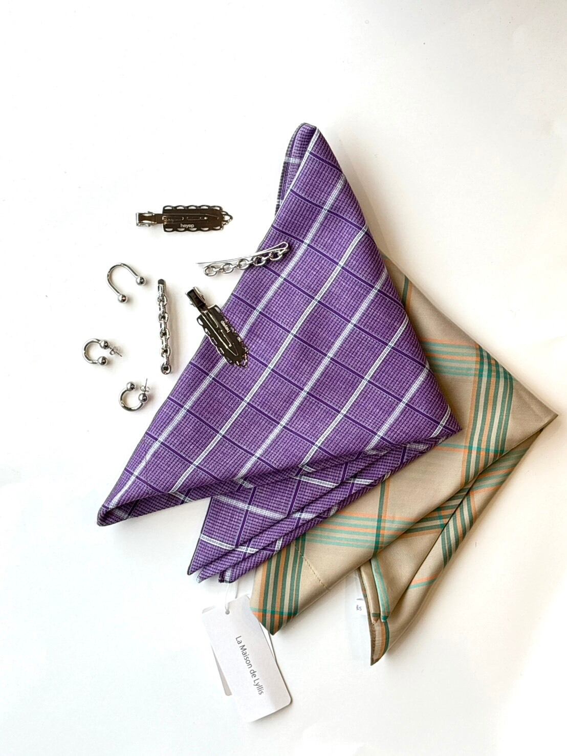 頭に参くだけでなく、首元のスカーフ、