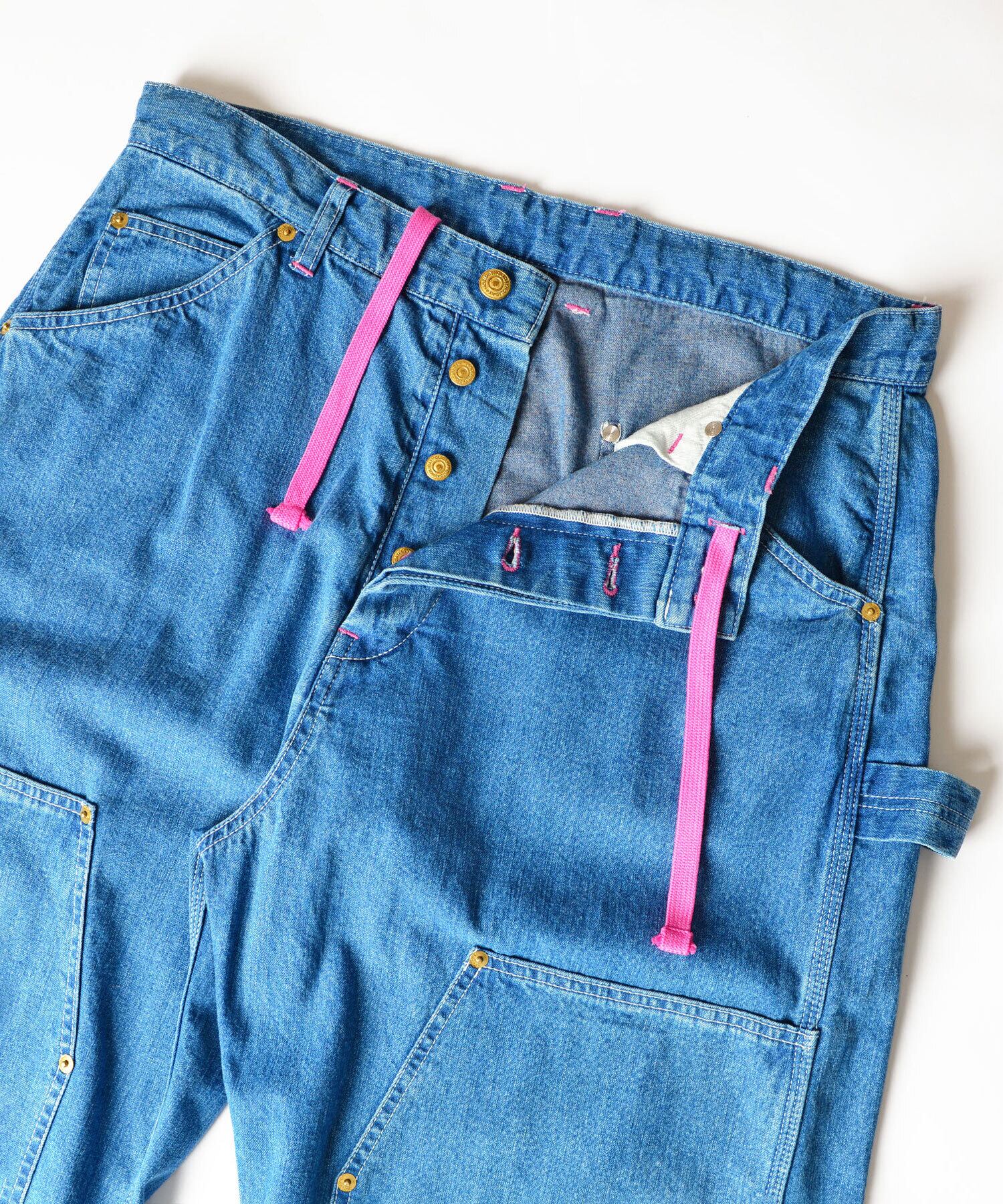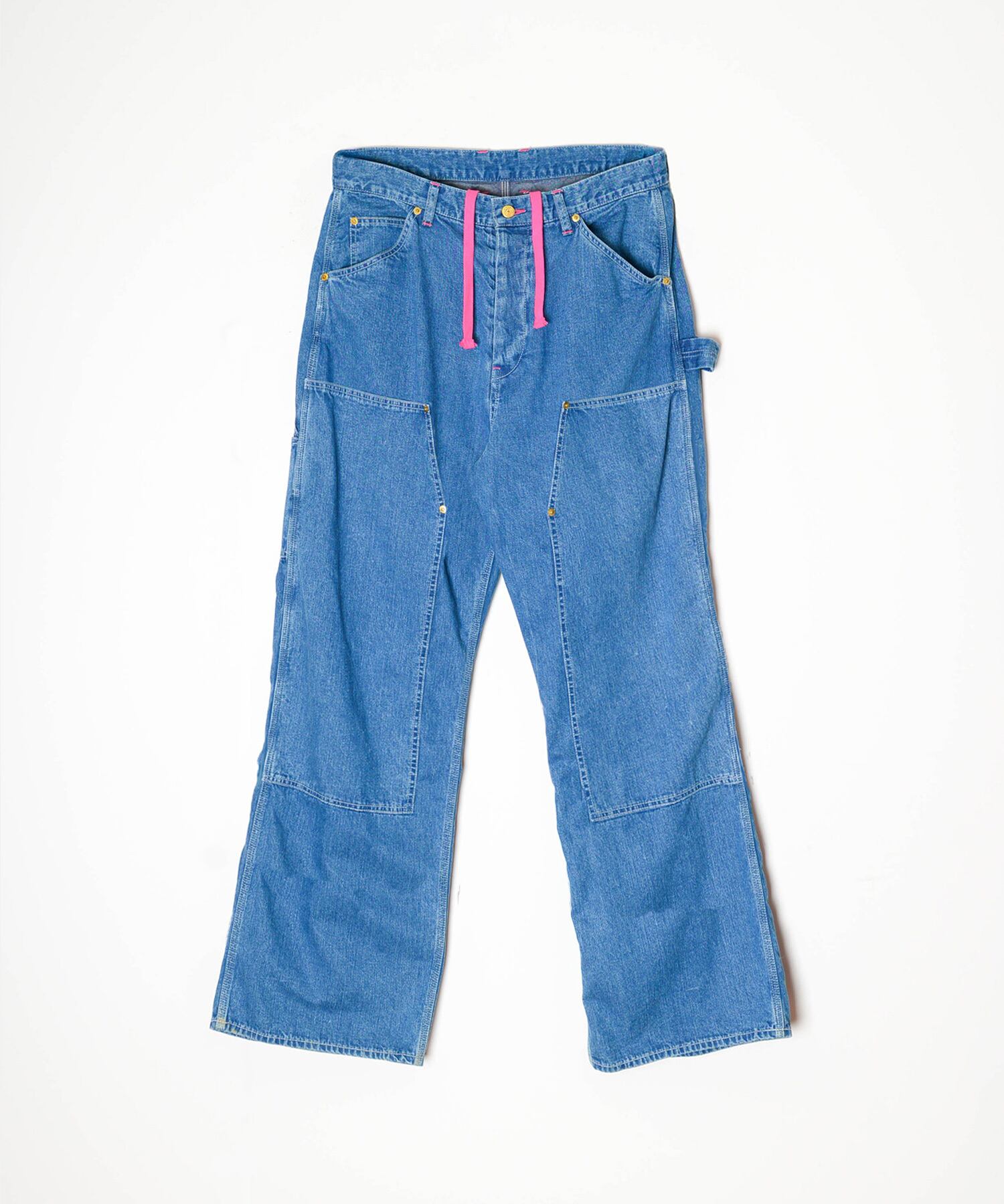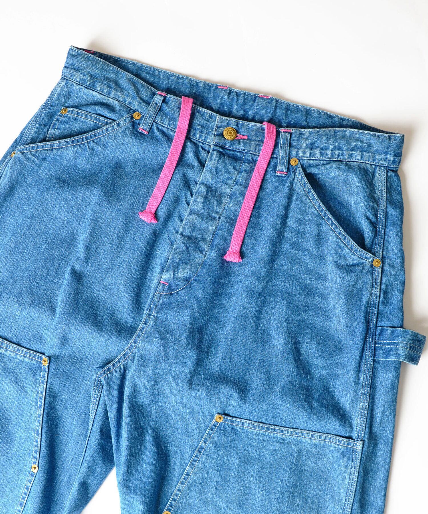 DOUBLE KNEE DRAWSTRINGS DENIM PANTS(PINK STITCH)