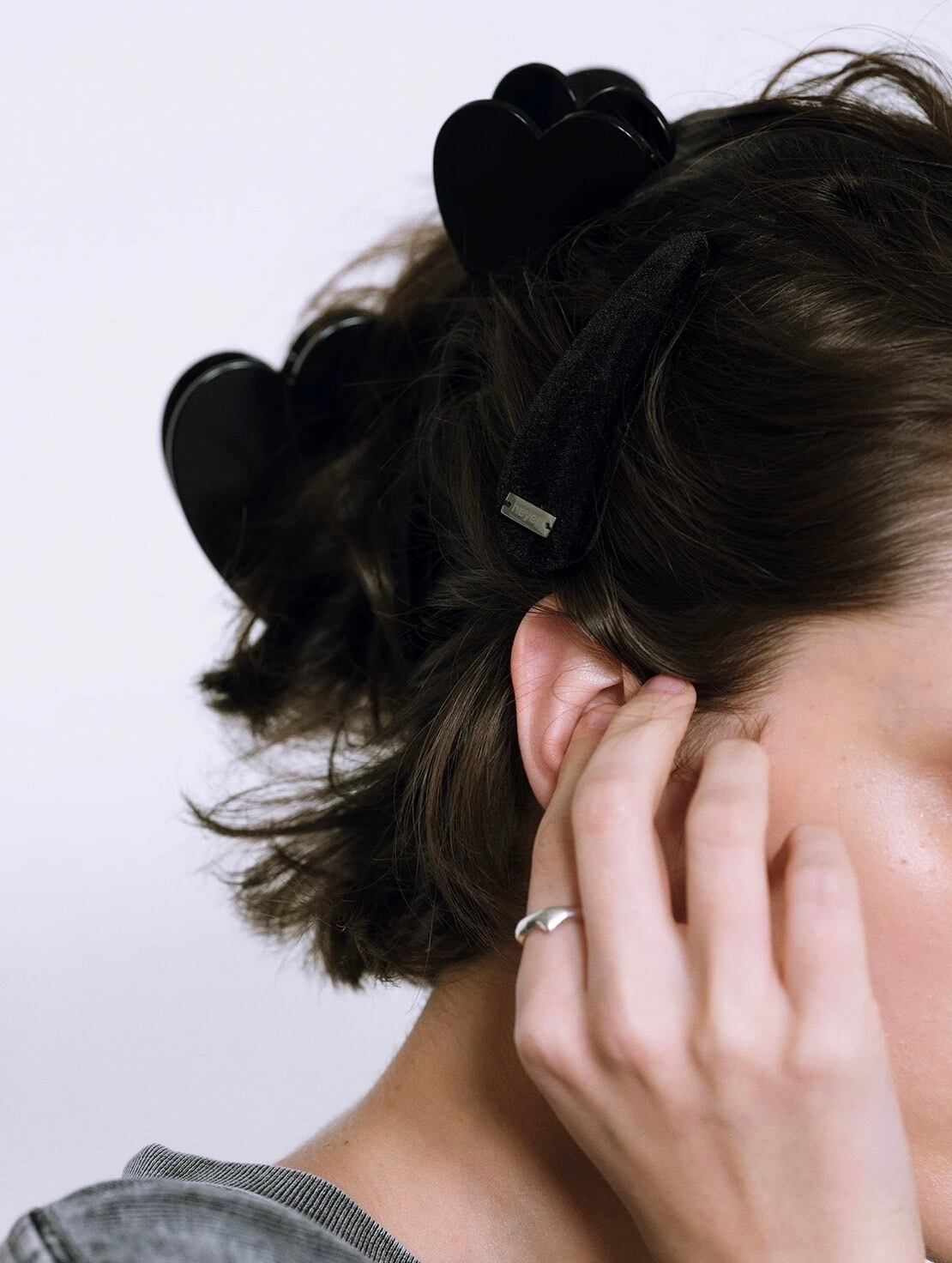 ミディアムサイズのブラックカラーのハート型ヘアクリップ